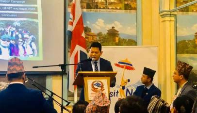 London based Nepali embassy has initiated the Visit Nepal 2020 through a formal program held on the premises of the Nepali embassy. Speaking during the formal program, Nepali ambassador to Britain Dr. Durga Bahadur Subedi prevailed upon all Nepalese living in Britain to visit Nepal once in 2020.