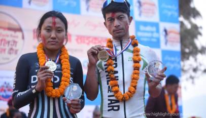 Similarly, Sandeep Sudauli of Kaski, Lekh Prasad Bhatt of Gorkha, and Shiva Shrestha of Palungtar, Gorkha came first, second and third respectively in the men’s category. On the women’s side, Usha Khanal of Gorkha came first, Keshari Thapa Magar of Lamjung second, and Jamuna Thapa Magar of Kaski third. The first, second, and third place winners in the competition within Gandaki received 5,000, 3,000, and 2,500 cash and medals respectively. There were 62 male and 17 female participants in the historic cycle race.
