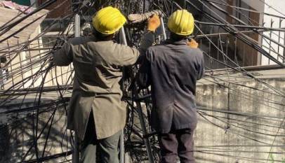 All the electricity, cable television, internet, telephone wires, and other useless equipment, and optical fibers are being removed from the center of the Thamel to beautify the Thamel area.