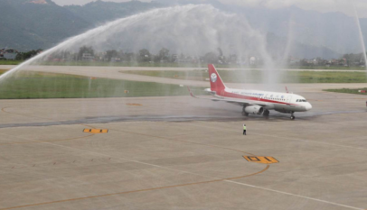 The Chinese narrow body A319 of Sichuan Airlines from Chhendu, landed at Pokhara International Airport at 9:06 am.