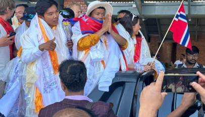 The climbers including Norwegian national Christine Harila and Nepali climber (guide) Tenjen Sherpa were welcomed in Kathmandu with great applause by their admirers for climbing the 14 mountains above 8000 m. in the shortest time.