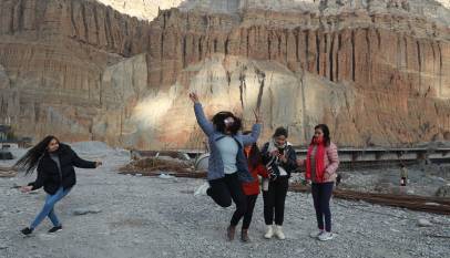 Domestic tourists who came to roam around Kaligandaki Corridor in Chusang, Waragung Muktikshetra Rural Municipality-3 of Mustang are enjoying themselves. Photo: Ratna Shrestha/ RSS